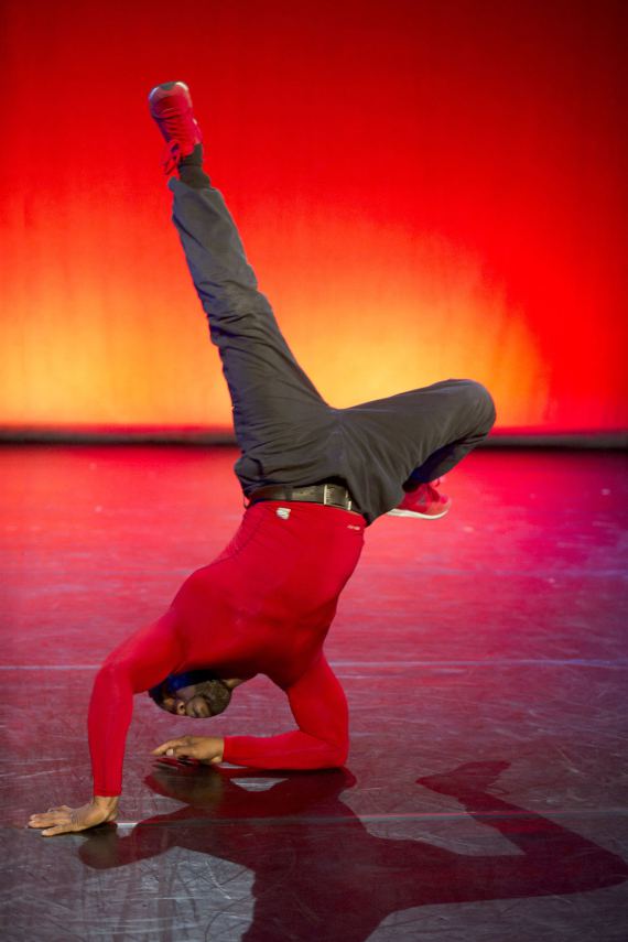 Mais le clou de la soirée était sans conteste le duo entre Amala Dianor et BBoy Junior intitulé Extension. Ce dernier est une légende dans le milieu hip-hop, (surtout depuis qu’il a remporté en 2007 le concours La France a un incroyable talent sur M6). Virtuose incroyable, Bboy touché enfant par la polio, est un danseur hors pair, il fallait donc pour l’accompagner toute la fluidité du corps d’Amala Dianor, qui répond par la légèreté et la souplesse aux propostions agiles et véloces de Junior. C’est une vraie fête du hip-hop, explosive et fougueuse à souhait qui clôt donc cette première partie de soirée.
