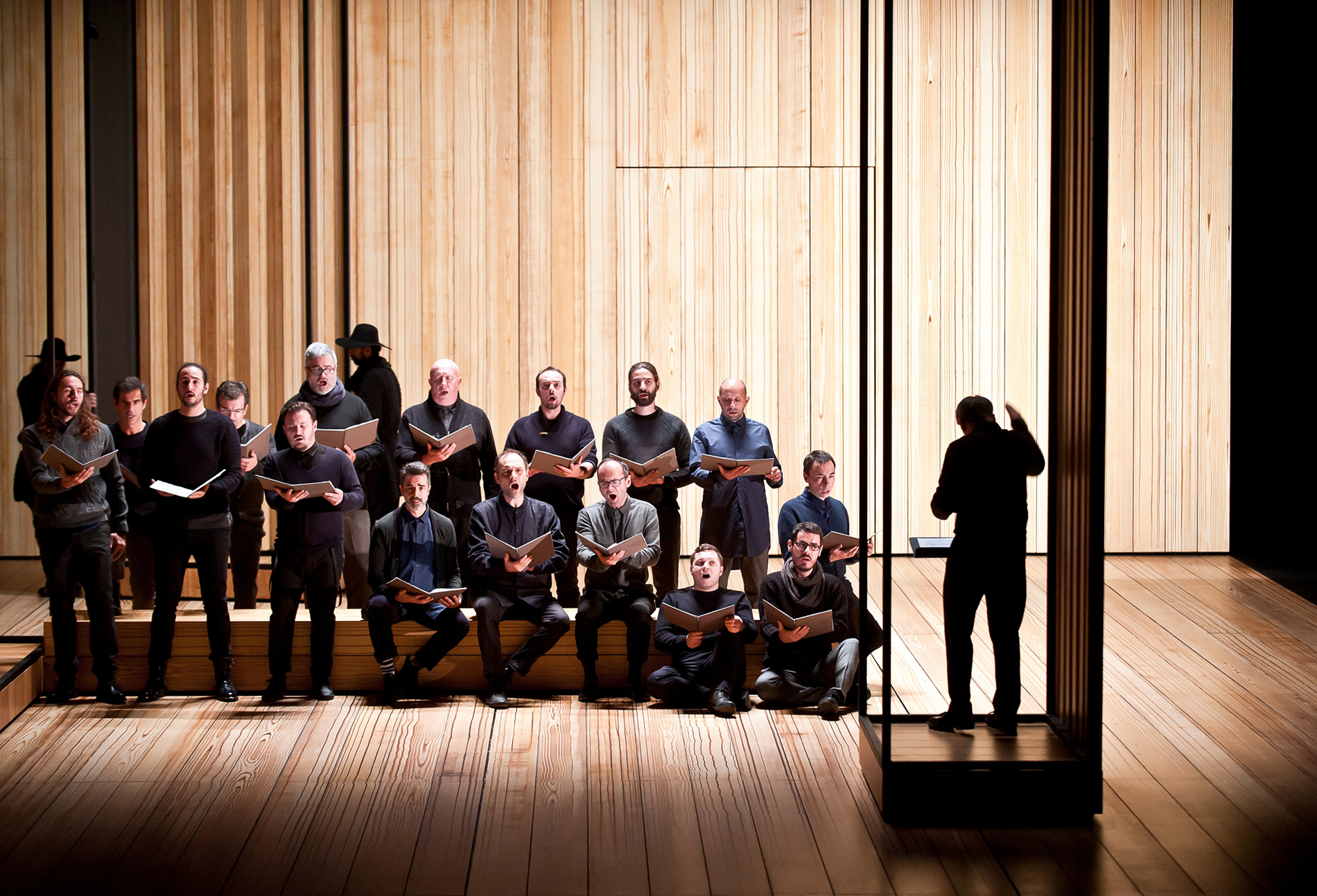Ce récit est précédé par un cycle de mélodies pour choeur d'hommes, dont les paroles restituent l'atmosphère champêtre traditionnelle d'Europe centrale, que cette histoire a pour cadre. A ce stade, on remarque le travail de Rizzo à travers un jeu d'allers et venues animant des caissons de bois mobiles, porteurs d'un pan de grille, au design très contemporain, s'agençant à la façon d'un jeu de construction géant. Leurs déplacements, incessants, autour des chanteurs, paraît un peu vain.