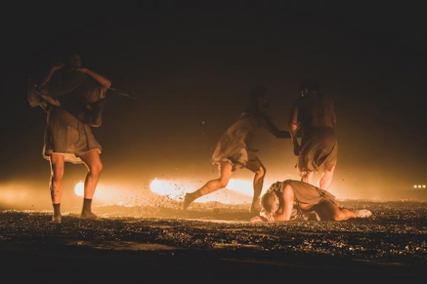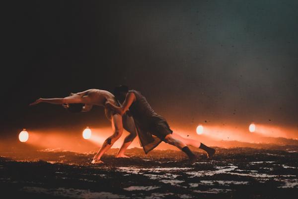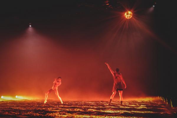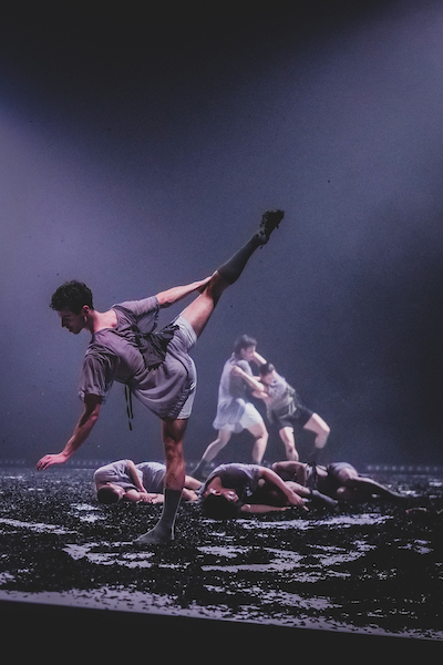 Dans la pénombre, traversée des lueurs d’incendie créées par les magnifiques éclairages de Tanja Rühl, des pas de deux bouleversants émergent alors, qui déploient toutes les figures du genre, bien que, tant dans la musique que dans les mouvements, il y ait un fort courant sous-jacent de tension et de puissance qui finit par faire surface de manière spectaculaire. Au fur et à mesure que The Grave’s Tears se développe, l'athlétisme des interprètes s’affirme, et un magnifique trio se déploie, en plus de solides sections à l'unisson. Mais le plus surprenant dans The Grave’s Tears reste que malgré cette débauche chorégraphique, nous saisissions une ambiance de fin du monde, que nous sentions s’immiscer la peur dans les bras qui s’élèvent, la mort dans les corps que l’on traîne, dans ces ensembles qui s’agrègent en masses désespérées. Le solo final d’Aram Hasler, d’une intensité rare, clôt la pièce sur une note de persistance : celle d’un mouvement qui continue, malgré tout. Avec The Grave’s Tears, Roderick George signe une œuvre de mémoire et de résistance, où la danse devient un cri d’amour face à l’effacement de la communauté LGBTQIA+.