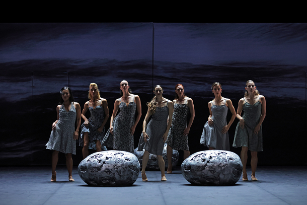 Aujourd’hui fort de 22 danseurs, le CCN Malandain Ballet Biarritz reprend avec brio cette légende racontant la mort de deux amants Ura et Ederra (eau et beauté en Basque) engloutis dans les flots lors de leurs étreintes. Mais cela ne suffisait pas à Thierry Malandain, et pour faire danser Eros et Thanatos, il a convoqué Adam et Eve, Abel et Caïn, Othello, Iago et Desdémone, Roméo et Juliette, Didon et Enée, Orphée et Eurydice, chacun de ses duos étant accompagnés par l’ensemble du ballet.