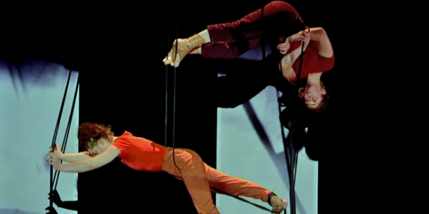 À certains moments ils étaient à deux mètres l’un de l’autre ! Mais je peux faire moins dangereux. En ce moment je prépare une pièce qui s’appellera En l’air, pour cinq chanteuses. Ce sera la rencontre avec la musique contemporaine, autour du silence. Et j’ai envie aujourd’hui de revoir tout le matériau de mes recherches pour les transmettre à une nouvelle génération. J’ai des projets de recherche avec l’Académie Fratellini et le CNAC. Il s’agit de revoir mes expériences par rapport à l’image filmée, à l’interactivité des capteurs de mouvement etc. Je pense que tout ce matériau est important par rapport à la perte de repères, à l’absence et la présence des corps qui constituent un paradoxe important dans les recherches des jeunes créateurs aujourd’hui. La transmission est d’autant plus importante que nous aurons de moins en moins accès aux vols hyperboliques, puisque ça devient de plus en plus compliqué à mettre en place.