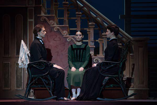 Et dans celui-ci, Alice Renavand est totalement captivante. Avec une maîtrise parfaite du jeu théâtrale, la toute nouvelle étoile, nous entraîne avec elle dans les méandres d’une pensée meurtrie, nous fait ressentir ses émotions. Elle rend magistrale l’astuce dramaturgique qui la met en scène comme actrice et spectatrice de son monde intérieur, campant un personnage fragile et attachant qui sombre d’un coup dans la folie et la violence meurtrière. Les autres protagonistes ne déméritent pas dans cette distribution. Le père et la belle-mère campés par Christophe Duquenne et Stéphanie Romberg sont parfaits, engoncés dans le « quand dira-t-on ? » et la respectabilité provinciale aveugle aux souffrances et aux aspirations de Lizzie, Léonore Baulac en Lizzie enfant est touchante, Laurence Laffon (La mère) est belle et émouvante, enfin, Vincent Chaillet en jeune pasteur amoureux un peu gêné par ses sentiments est aussi impeccable que son acuité dans le mouvement. La gestuelle qui puise par moments dans le folklore américain est d’une grande liberté de style, à l’image de la partition de Morton Gould qui vise avant tout l’efficacité dramaturgique. Mais, ce ballet s’attarde beaucoup moins sur une recherche chorégraphique formelle que ne le fait celui de Birgit Cullberg.
