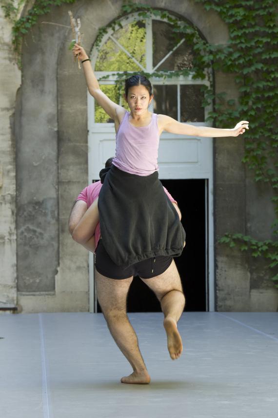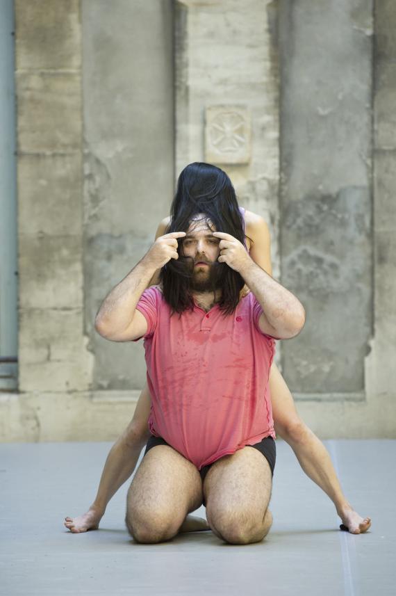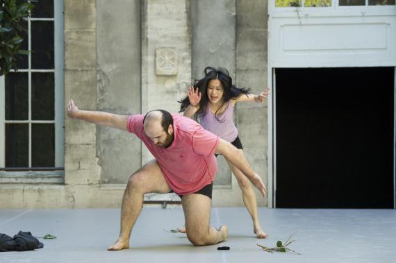 Religieuse à la fraise parle aussi de différence et peut-être de la difficulté d’être ce que nous sommes mais sur un mode léger et amusant. Réunissant la frêle Kaori Ito, danseuse d’exception que l’on a vu chez Alain Platel, Philippe Decouflé ou Aurélien Bory (qui lui a consacré un portrait dans Plexus), et Olivier Martin-Salvan, 120 kilos, comédien et chanteur qui a travaillé notamment avec Valère Novarina, la pièce multiplie les situations impossibles et saugrenues avec tout autant de finesse que de réserve. Se gardant bien de tomber dans une farce ou une redite de La Belle et la Bête, ils savent tous les deux déjouer les évidences et jouer de leurs différences comme d’un instrument. Rien d’étonnant puisque cet instrument est leur corps, avec leur impact visuel et les clichés conscients ou inconscients qui leur sont attachés. Le spectacle est à la fois insolite et délicat, drôle le plus souvent, finissant dans un semblant de rock’n roll endiablé rythmé par le souffle et le bruit du corps des danseurs qui s’empoignent avec un bel appétit sinon de la gourmandise, suggérée par le titre Religieuse à la fraise.