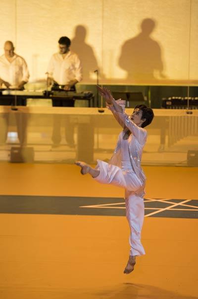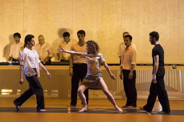 Au niveau musical, ce sont carrément trois formations qui ont présidé à cette interprétation de Drumming : trois membres de l’ensemble Ictus (qui sont à l’origine de la création d’Anne Teresa), six jeunes étudiants percussionnistes, du Conservatoire national supérieur de musique et de danse de Lyon, et le flûtiste solo de l’Orchestre de l’Opéra de Lyon ainsi qu’une soprano et une mezzo-soprano. Là aussi, la réussite est totale et la direction de Georges-Elie Octors qui dirige l’ensemble Ictus, miroitante à souhait.