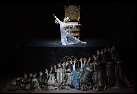 Lors de l’entracte, Katerina Novikova, comme à l’habitude donna un certain nombre d’explications, insistant en particulier sur le sens des trois cylindres du décor de Simon Virsaladze, comparables à des absides orthodoxes, ancrant le ballet dans un sacré, toujours présent aujourd’hui ajouta-t-elle. Si l’on joint à cela que ce ballet voué à Ivan IV, dans l’un des tableaux les plus spectaculaires, chante la victoire contre les Tatares, on voit que ce n’est pas uniquement par son esthétique qu’il conserve une grande actualité.