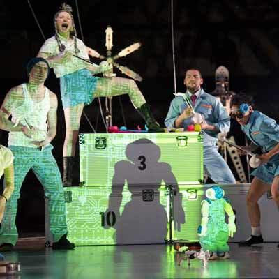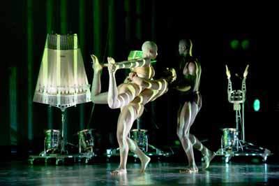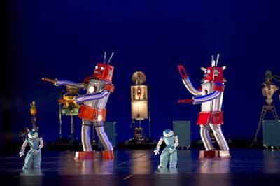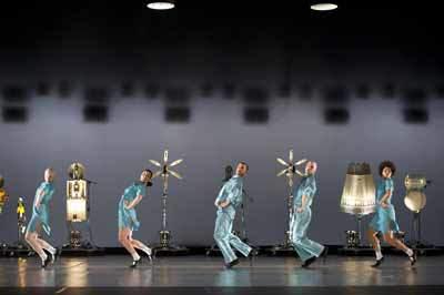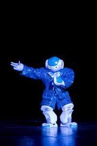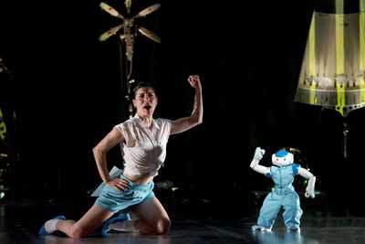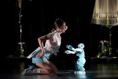 Avec son goût pour un certain baroque décalé et astucieux, Blanca Li et le collectif Maywa Denki, des artistes japonais qui naviguent avec bonheur dans l’univers des machineries poétiques et musicales, nous font entrer de plain pied dans ce monde interlope où se côtoient les hommes et les robots, les objets inanimés raffinés et les danseurs animés et mus encore par la raison ou le désir. Le mélange des uns et des autres donne lieu à une rencontre savoureuse. D’une part avec les protoypes musicaux low tech de Maywa Denki aux noms bizarres et à l’esthétique rétro-futuristes. Le casting inclut également six petits robots « Nao » de Aldebaran Robotics (une entreprise française, leader sur le marché !) qui dansent ou marchent comme de tout jeunes enfants à l’équilibre un peu fragile, ce qui les rend d’emblée attachants. L’ensemble est séduisant, bien rythmé, dynamique et enlevé… même si l’on peut se demander si la danse n’est pas un peu occultée par ces machines qui captent l’attention par leur habilité et leur nouveauté. Toujours est-il que le spectacle fonctionne très bien, tenant de bout en bout sa fantaisie opératique avec la dose d’humour et d’absurdité qu’un tel projet suppose.