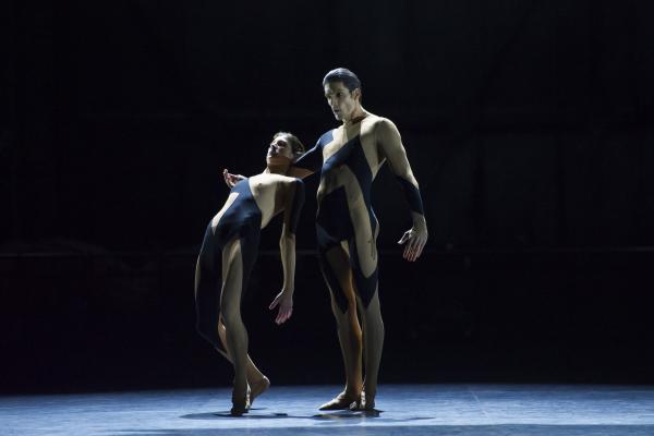 Les costumes, des justeaucorps chair et noir, qui, grâce à des éclairages sombres occultent certaines parties du corps des danseurs, dessinent des lignes abstraites qui, en déréalisant l’anatomie, créent un langage chorégraphique inédit. La gestuelle alterne l’électrique et l’alangui, la fulgurance et l’étirement. Cela donne une plasticité aux danseurs qui excellent dans cette œuvre.