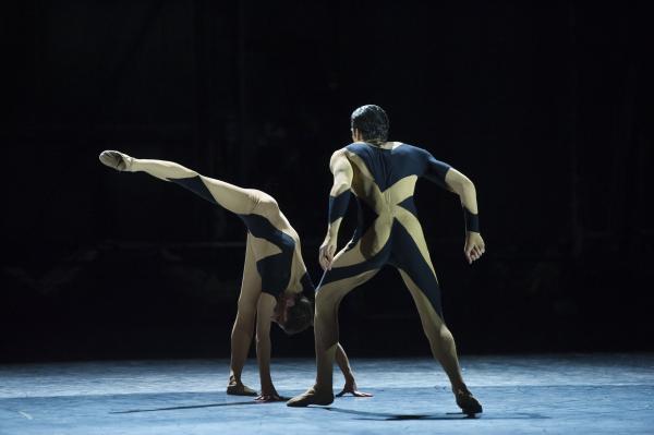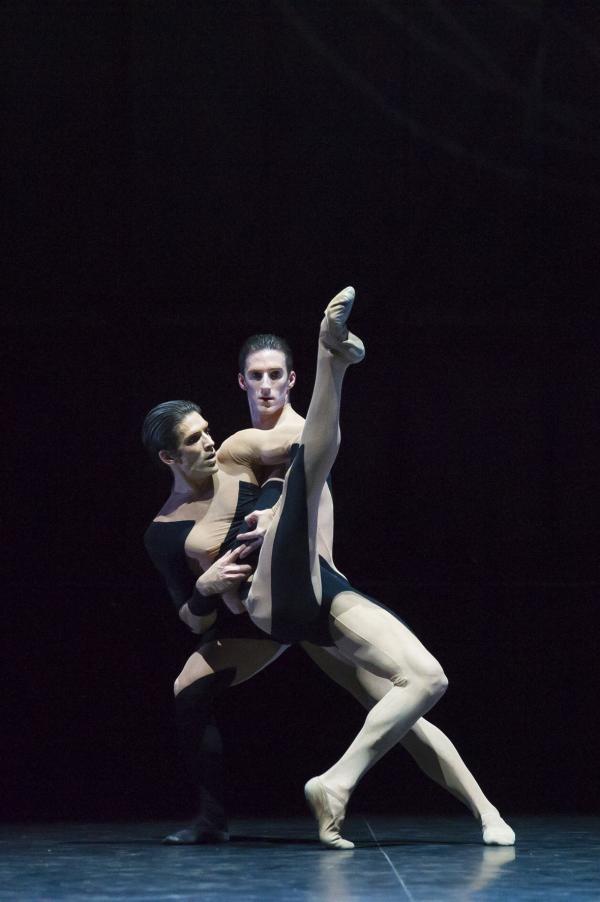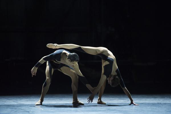 Les duos Mathieu Ganio, Jérémie Bélingard, tout en extensions, deviennent une émanation du silence intense de la lumière. Les courbes travaillent sur le contrôle de la force musculaire, donnant une sorte d’épaisseur au mouvement, tandis que bras et jambes se déploient dans une sorte d’animalité aiguisée.