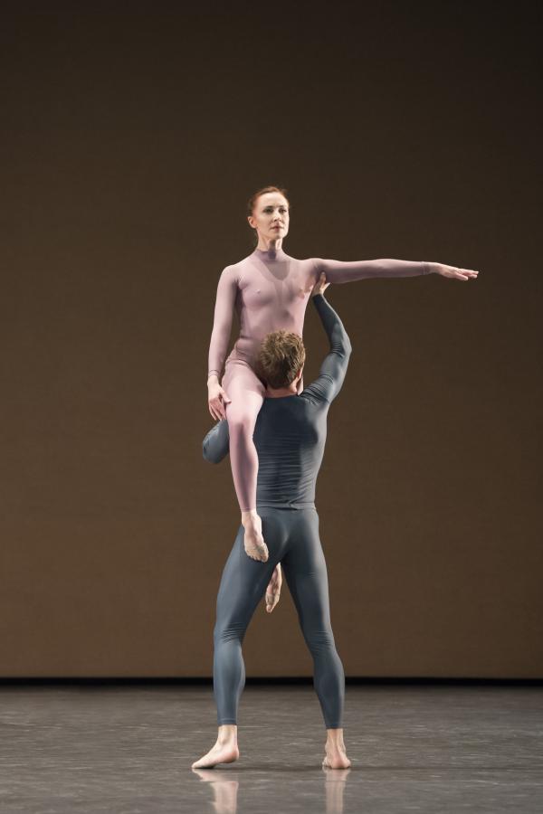 Le duo qui réunit Amandine Albisson et Audric Bezard est un miracle. C’est sans doute un des plus beaux duos de William Forsythe, créé sur Tracy-Kai Maier et Marc Spardling, sur la musique de Thom Willems. Selon William Forsythe il a « utilisé des changements de poids pour pousser les postions classiques vers des angles instables. Autrement dit, le danseur est propulsé vers le bas parce que sa chute l’y mène ». Ce qui donne une pièce entièrement coordonnée, mais avec des angles extrêmes, des croisements insensés, et surtout une dynamique du contrepoids mise en tension à tout moment par des changements d’appui. Seule la vitesse permet au danseur de tenir la phrase en évitant la chute. C’est impressionnant. Et d’une beauté indicible. Décidément, pour Forsythe comme pour Cunningham, la danse est un mouvement de pensée !