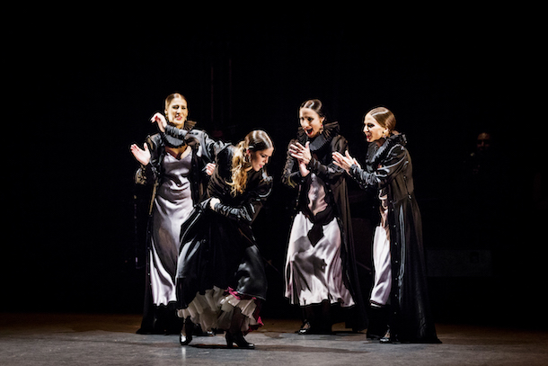 Elle hypnotise, charme, subjugue ! Elle rompt avec tous les codes et, soutenue par les percussions, elle danse à la perfection un flamenco qui oscille entre le classicisme et un extraordinaire modernisme. Quelle maîtrise ! Puis les deux jeunes hommes réapparaissent pour chanter l’air de La mort de Didon de Purcell. Mort de l’ancien régime, mort des conventions sociales et enfin, acceptation de la libération de la femme.
