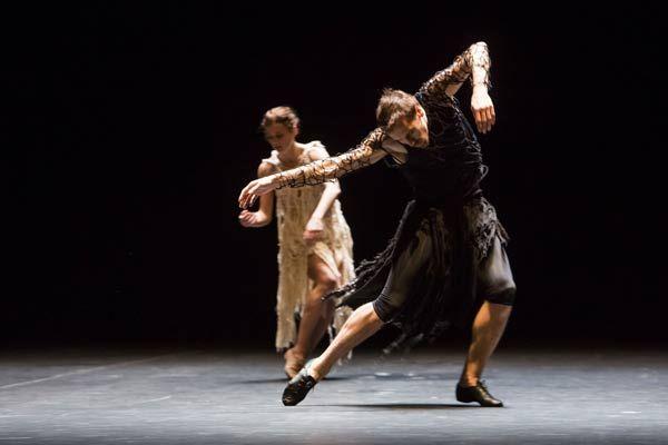 Avec un programme qui réunit trois auteurs aussi dissemblables que le sont Saburo Teshigawara, Trisha Brown et Jiří Kylián, on n’aurait pas immédiatement parié sur l’unité de la soirée. Pourtant, ce sont les subtiles correspondances entre trois pièces créées à des moments très différents qui irriguent la tonalité générale de ce spectacle, placé sous le sceau du secret, du sacré et des ténèbres. Dans Darkness is hiding black horses, pièce tout juste créée pour ce programme, Saburo Teshigawara s’attache à rendre visible l’invisible par le surgissement de la danse. Laissant sourdre du fond de l’obscurité la lueur du souffle, fumeroles d’une présence évanescente soulignée par la soudaineté d’un geste. La première image qui fait d’Aurélie Dupont une apparition qui s’évapore aussitôt pour n’en laisser que sa rémanence rétinienne est en ce sens, littéralement saisissante. Tout comme le bras de Nicolas Le Riche qui se lève, tranchant d’un coup l’espace qui le met au jour, tandis que Jérémie Bélingard semble émerger en tournoyant de sombres limbes. Bâtie comme une rêverie sur l’opposition de forces obscures et vitales, symbolisée par ces « chevaux noirs, retenant leur souffle, à l’affût » les danseurs, s’enroulent et se déroulent en fluides inclinaisons, se délient et s’enfuient, au son de cavalcades lointaines ou seulement imaginées, de respirations équines, et de bruits étranges.