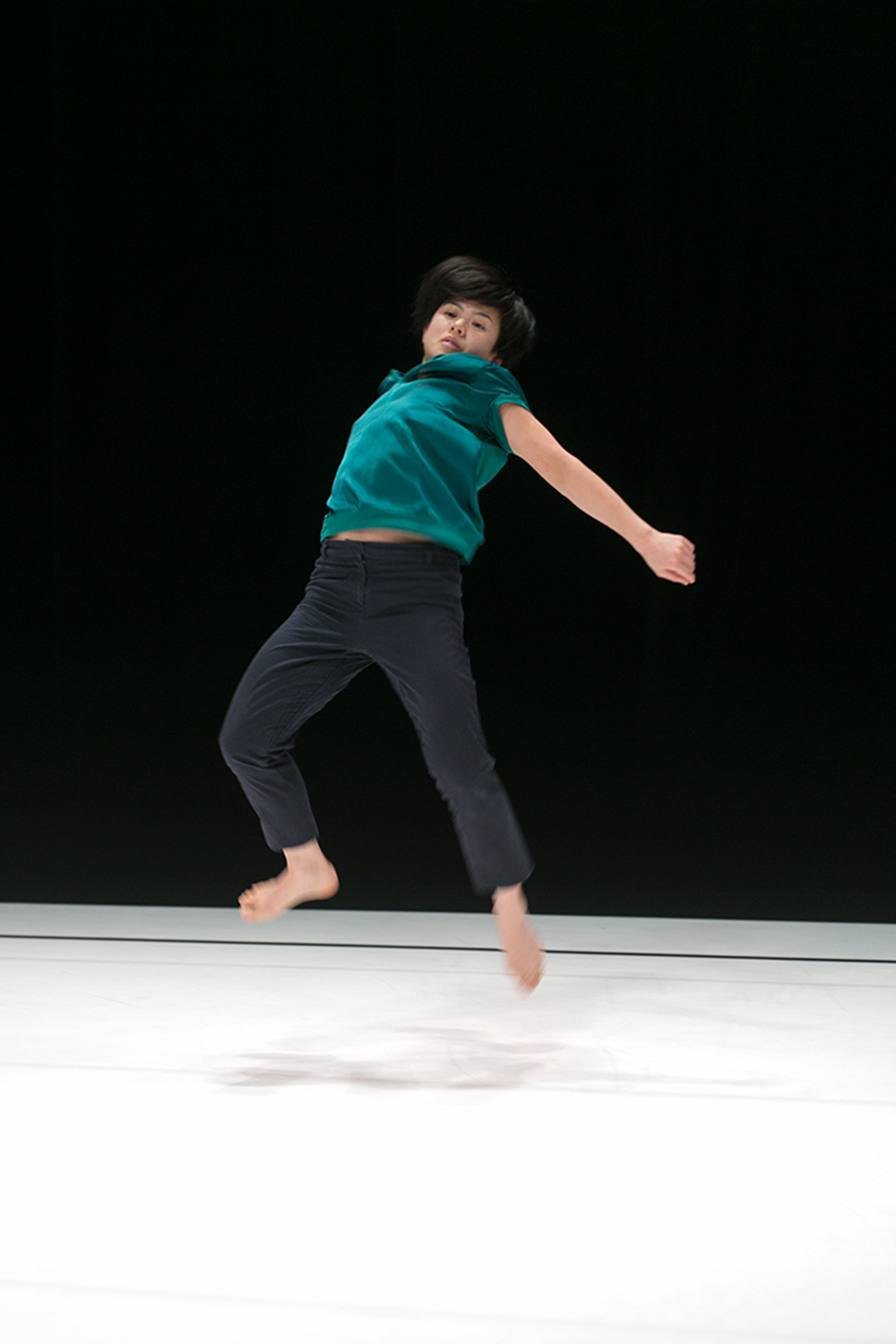 loom (2014) est un duo féminin (les formidables Julie Charbonnier et Madoka Kobayashi assurant chaque pièce de la soirée avec bravoure et fraîcheur) ponctué par le piano de Nico Muhly (compositeur au Los Angeles Dance Project de Benjamin Millepied) et porté par la présence sonore du souffle des danseuses. La musique est une sorte de ragtime contemporain qui jaillit par intermittence, tel un souvenir. Entre Kobayashi et Charbonnier s’engage comme une lutte à distance, où chaque geste est un punch, chaque expiration une tentative de souffler l’autre. Ce face à face très énergétique est un art martial immatériel, illustration la plus condensée qui soit du travail de Pick sur la relation entre les interprètes, liés l’un à l’autre par une liberté partagée.