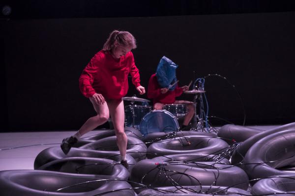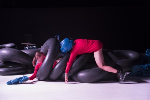 On en vient à s'intéresser à ce genre de phénomènes, car enfin, la pièce The Goldfish and the Inner Tube est à rattacher à une radicalité en arts plastique autant que chorégraphique, selon laquelle ce que l'on voit est ce qui est à voir. Aucune narration pré-existante et surplombante. Aucune illustration. Aucune intrigue. Aucune péripétie dramatique. Encore moins psychologique. Une pure abstraction, concluera-t-on ? A ceci près que des actions manifestes sont engagées par des êtres humains. Des actions très concrètes. Elles affectent la matière. Laquelle ne manque pas d'y répondre. Et ainsi de suite.