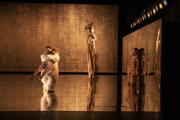 Ce plein, pour ne pas dire ce trop-plein, on le trouve d’un bout à l’autre d’une pièce d’un assez long métrage – celle-ci dépassant les 90 minutes. L’opus est riche, très riche, saturé de signes, et au moins du double d’intentions et d’actions du spectacle routinier – il faut croire que son auteure a voulu illustrer son sujet en traitant exhaustivement et du jour et de la nuit. D’un « jour et nuit de fête », pour citer la feuille de salle, qui lui permet « la plus grande liberté stylistique », à savoir l’hybridation entre « le baroque, l’expressionnisme, l’abstraction lyrique [et] le romantisme ».