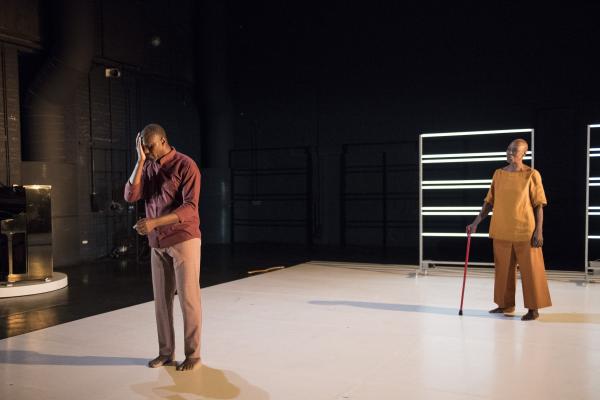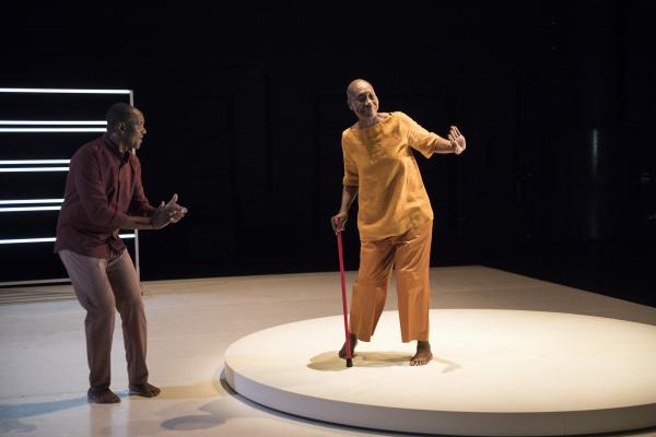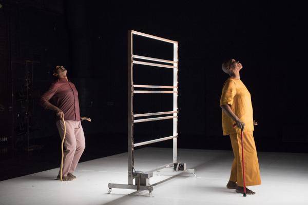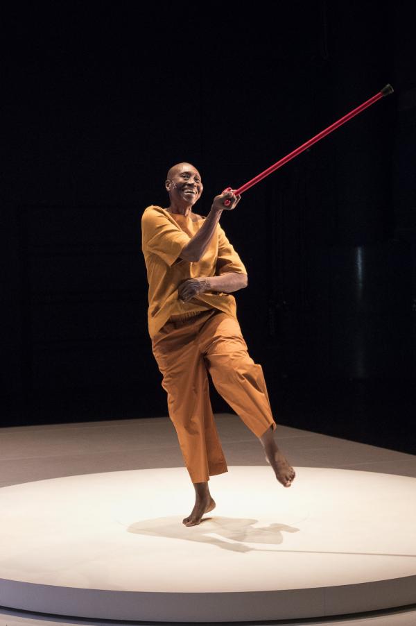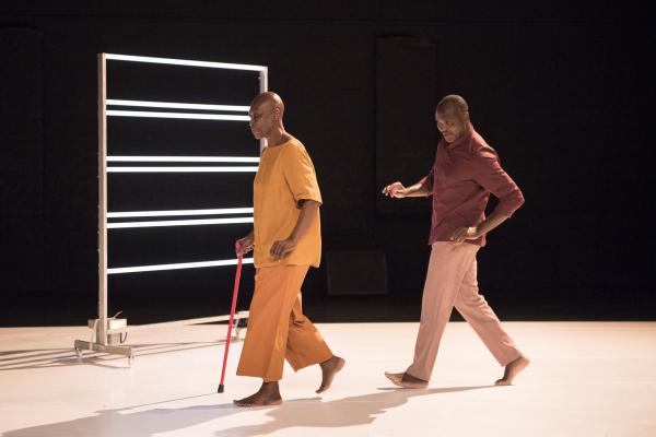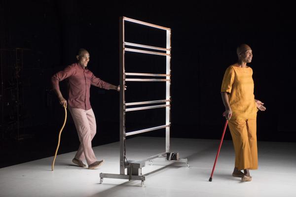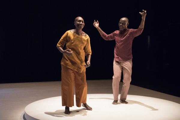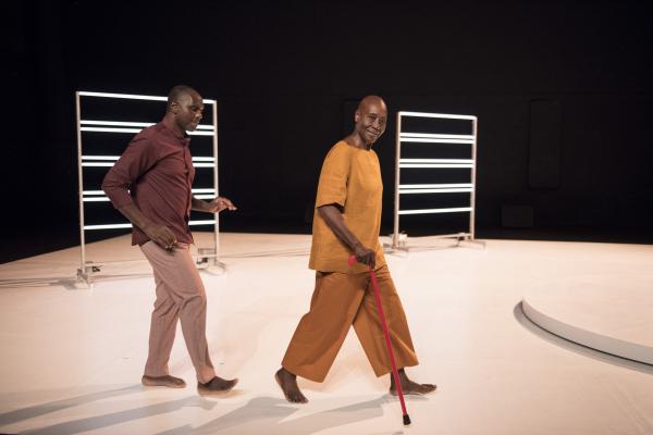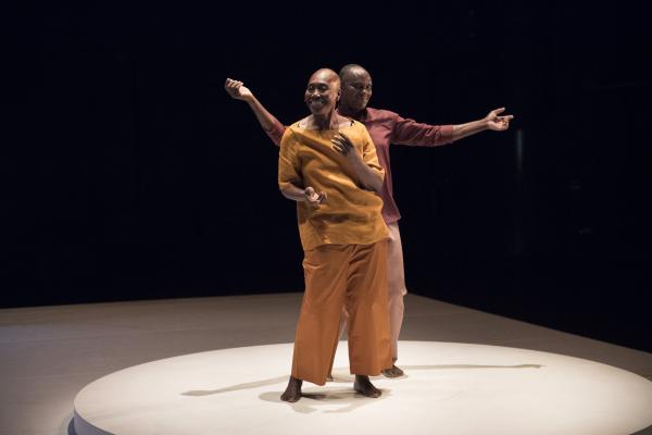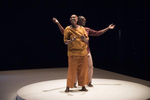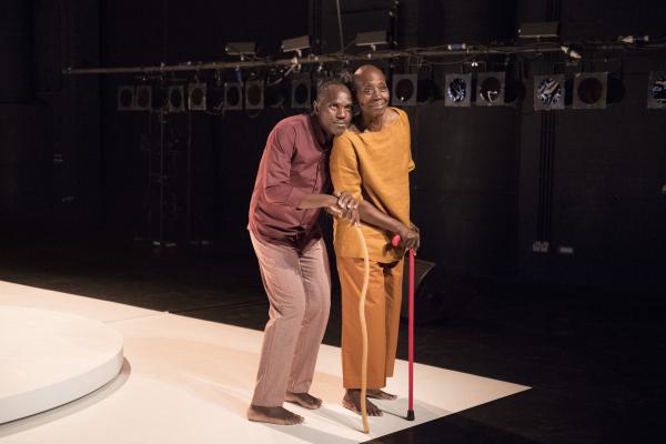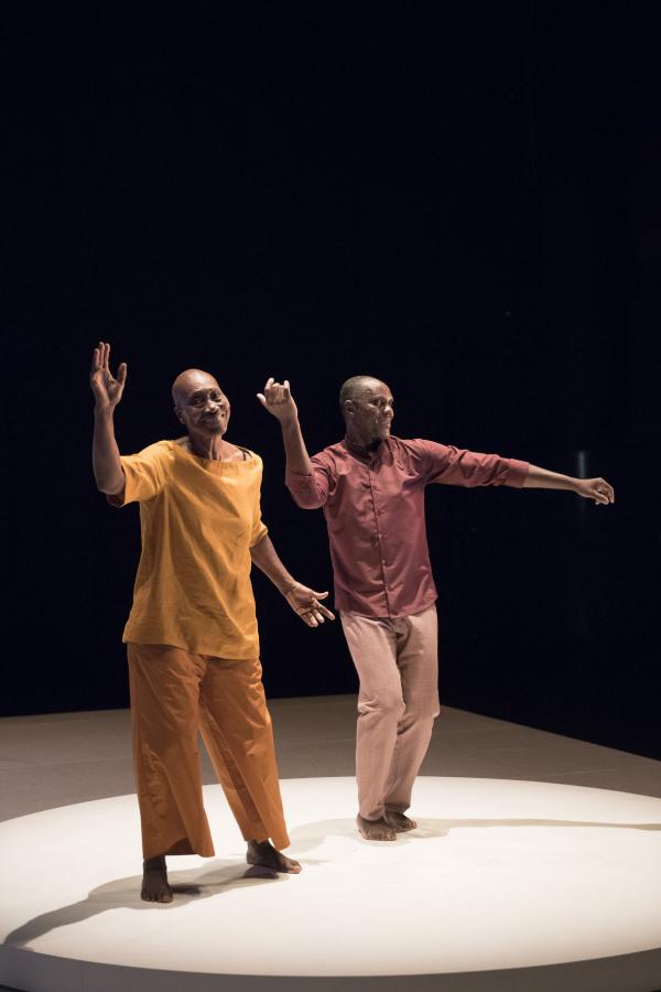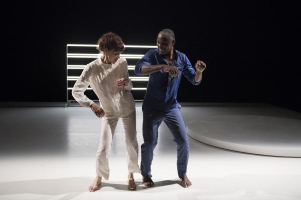 Puis la danseuse, aidée d’une canne et suivie par Salia, faisait le tour du plateau avant d’entreprendre sur la tournette une démonstration commentée de plusieurs danses africaines, dont la « danse Acogny », et de pointer avec humour leurs différences avec les « talons-pointes-pas chassés » des danses européennes. Les deux complices se rejoignaient ensuite, mains jointes, pour une dernière danse. Outre le plaisir de voir Germaine donner une fois encore la démonstration de son talent, c’était un bonheur de retrouver la danse puissante et retenue de Salia, qui ne s’était pas lui-même mis en scène depuis huit ans. Comme l’indiquait le sous-titre du duo : De beaucoup de vous, c’était aussi la mémoire de la danse africaine qu’il questionnait, incarnée à ses côtés par sa plus éminente représentante.