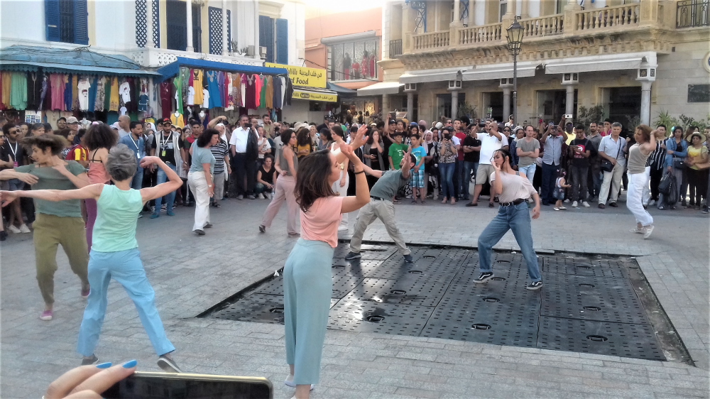 Mais Carthage Dance se doit aussi d’affirmer son lien avec le cœur de la ville et la Médina, en proposant des spectacles en plein air. Malheureusement, Tunis n’offre guère de places où la danse puisse s‘épanouir dans l’espace public. Le seul endroit est la place Bab Bhar, à l’entrée de la Médina, où un public curieux, ouvert et socialement très mélangé a offert un excellent accueil à une série de spectacles, tels le solo Sept âmes de Bahr Ben Yamed ou Les Filantes de la Franco-Tunisienne Cyrinn Douss, un travail avec un groupe de non-professionnelles tunisiennes.