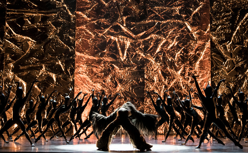 C’est alors que le rideau s’ouvre sur un décor doré extrêmement réussi (scénographie de Jay Gower Taylor) où apparaissent des créatures insectimorphes, en latex collant et rutilant, avec leurs antennes et leurs griffes, qui grouillent sur pointes, tandis que chuchote et chuinte la voix de Marina Hands sur une musique pop rock tonitruante de Teddy Geiger, intitulée, bien sûr, Body and Soul. S’y ajoute une espèce de Yéti assez ridicule avec sa fourure qui pendouille, et ses gestes grotesques. Mieux réglé, ça pourrait être du cabaret, ça reste du divertissement. Le public semble conquis. Malheureusement, ça n’a aucun rapport avec ce qui précède et on se demande encore ce qui a pu inciter Crystal Pite à ajouter cette « fin postiche ».