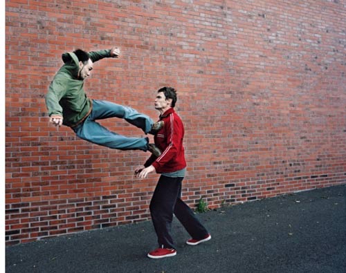 Tina Merandon, photographie les corps. Elle transfigure chacune des postures. La distance juste,, question principale de la photographie, devient la voltige de l'épreuve de vérité des modèles. La gymnastique, les arts martiaux la crudité de la chair, l'obsolescence de la parole, le glamour effronté, c'est autour de tous ces thèmes que se cristallise la recherche de cette photographe en route vers ces "corps évadés", rendus à eux- mêmes.