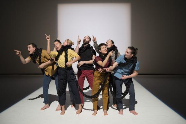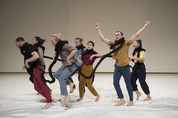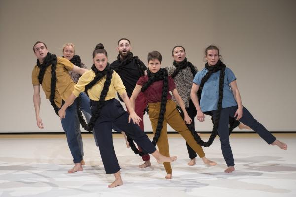 Artiste associée à Chaillot - Théâtre National de la Danse, Jann Gallois attache sept danseurs à une longue guinde noire, en quête de Nirvana.