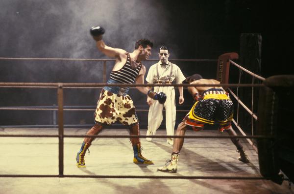 A La Rochelle, il n’y a pas que des pucelles (1986), pièce foutraque et programatique, signe l’arrivée de la bande à Chopinot au pied des tours du port rochelais. On trouve Herman Diéphuis, Michèle Prélonge, Rita Quaglia, Monet Robier (la fille de Rosella Hightower), Fred Werlé. Une brochette de ce qui se fait de mieux sur les plateaux de la danse du moment. Avant eux, il y avait Véronique Ros de la Grange qui connaîtra une carrière de chorégraphe discrète mais importante, Philippe Decouflé (dont les accointances artistiques avec Chopinot ne sont peut-être pas suffisamment soulignés), Frédéric Lescure. Chopinot a aussi été un vivier de danseurs et de futurs chorégraphes. Ce rôle, là aussi, complète celui de Dominique Bagouet. Si la gestuelle de Chopinot, plus exubérante, plus débridée, ne possède pas le raffinement subtil qui fait le prix des dernières pièces de Bagouet, son univers visuel décapant, les idées jouant du kitch et d’une esthétique très « années 1980 », revendiquant une androgynie pleine de sensualité, un fort penchant pour le cinéma et la bande-dessiné, son sens de la provocation drôlatique, constituent autant de marqueurs stylistiques de l’époque.