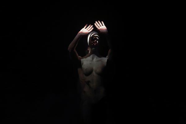 Cette fois, la présence féminine se manifestait sur scène d’emblée par l’entremise d’un mannequin nu et privé (à la suite d’une catastrophe ?) de ses bras et d’une jambe. ‘Elle’ était confrontée à deux hommes, Mickaël Comte à nouveau et Martin Harriague lui-même, endossant en raison sans doute des contraintes sanitaires ce rôle d’interprète auquel il avait semblé dire adieu l’an passé, sur cette même scène, dans Fossile.