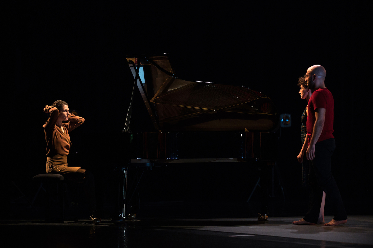 La présence de Vanessa Wagner s’inscrit comme un chef d’orchestre. Sa délicatesse, ses respirations et sa puissante interprétation apportent une note vibrante à cette création. Parfois, elle happe le regard tant elle vit intensément cette histoire d’amour. Finalement, L’autre ressemble plus à un trio qu’à un duo.