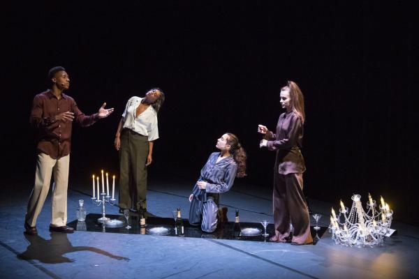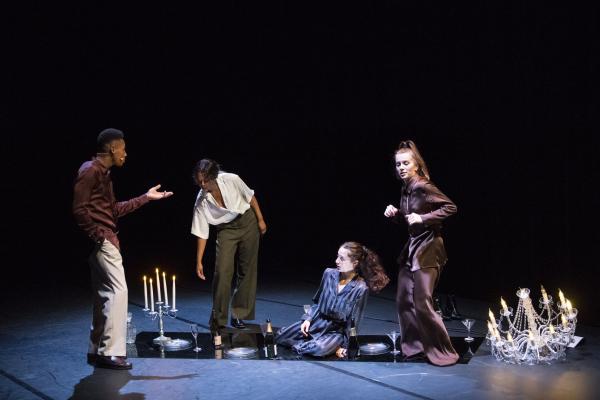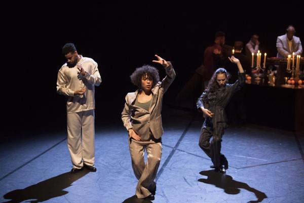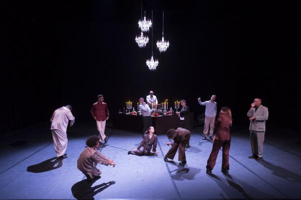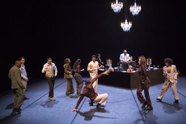 Pour l’ouverture de cette édition historique, Bouside Ait Atmane et Saïdo Lehlouh ont imaginé… une fête ! Ils nous l’annoncent d’abord par un lustre posé au sol, en avant-scène, devant le rideau fermé, quand Cjm’s, chanteur à la voix magnifique, entre dans la salle par le côté et entonne une introduction en soul (« you invite me… ») qui met l’eau à la bouche. Et le rideau s’ouvre sur un buffet dressé sur une énorme table – surplombée de trois autres lustres – derrière laquelle se tient l’indispensable serveur qui cependant ne sert pas de boissons mais de la musique. DJ Sam One est d’une élégance parfaite, comme tous les danseurs, ici sapés comme on en rêve chez les ambianceurs de Kinshasa. Mais cette fête est givrée, ultra-parisienne, aux antipodes de l’ambiance bouillonnante qu’Olivier Meyer rappela avec chaleur avant le lever de rideau. Une soirée chic où on va pour se montrer et où il en faut beaucoup pour briser la glace et entrer en contact avec les autres invités.