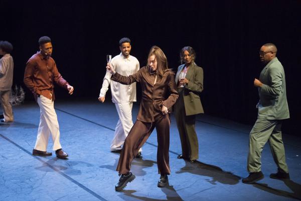 Bouside Ait Atmane et Saïdo Lehlouh prennent ici le parti d’une party qui pourrait commencer à mousser après la fermeture du rideau. Juste avant la fin, un trio féminin fulgurant à la gestuelle explosive et pourtant calibrée au millimètre près avait produit un dernier point d’orgue. Ces instants de grâce existent, ils fusent sans crier gare, occasionnellement, au cours d’une longue traversée d’une soirée où de temps à autre le public déguste une gorgée d’un délicieux élixir de danse et de chant, de ralentis somptueux comme pour partir dans un rêve, de popping et d’autres prouesses sur fond de bruit de voix, de verres et d’assiettes. Mais cette fête-là est purement acoustique, elle a lieu ailleurs, dans une autre salle ou dans la mémoire des invités. Dans leurs propres conversations, ils n’hésitent pas à ironiser sur l’aspect clean de leur présence et « ces danseurs sapés qui ne font pas un seul jogging dans la journée ».