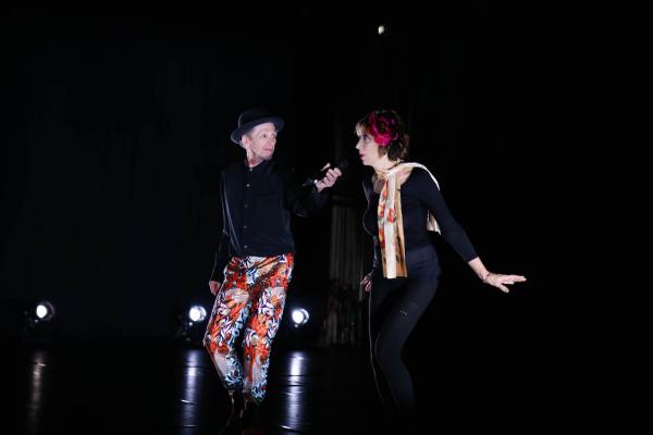 Devant un rideau en lamé sur lequel étaient projetées des images et des vidéos d’un temps que les moins de vingt ans ne peuvent pas connaître, à commencer par celles du Boléro de Ravel et les diapos dessinées par Alwin Nikolaïs pour servir de décor à son « Water Study », extrait de Sanctum (1964), dansé live, rappelant le passage de Boivin au CNDC à l’ère Nikolaïs, de 1978 à 1981. Ont été évoqués : les débuts de la troupe en 1981, l’époque « Bambi », à l’école du Pont-de-l’Arche ; celle des « performances » qui datent de son installation au Moulin du Robec de Catherine Atlani à Darnétal, avec Les Trois chipies ; son déménagement, en 1983, au Centre d’art et d’essais de Mont Saint-Aignan, à l’invitation de son directeur, Jérôme Alexandre, avec un extrait de Vénus et les toutous, de tendance punk ; le premier festival d’Été en Normandie, avec la pièce Désir désir, en 1983 ; la commande, par la Maison de la danse tout juste créée à Lyon, de Strada Fox ; le thème de La Horde, une des improvisations d’alors ; l’union des collectifs Beau Geste et Lolita pour la production, en 1986, du grand spectacle Zoopsie Comedi ; la création de Carmen en 1992 à la Biennale de la danse de Lyon et à La Batie-Festival ; trois numéros inspirés du Cabaret pataphysique imaginé en 1993 ; un exemple tiré de La Danse, une histoire de à ma façon (1994) ; un autre, pris dans 96 petites histoires au-dessus du ciel (1996) qui fut représenté au théâtre Bel image de Valence.