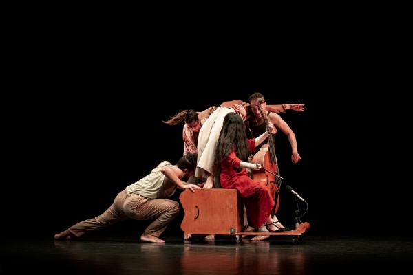 Avec quatre danseurs, deux hommes et deux femmes, la chorégraphie de Mourad va sans cesse s’élaborer tel un dialogue sensible et poétique entre les cinq artistes. Pas à pas, les uns et les autres font glisser le socle de la musicienne qu’ils ou elles accompagnent d’un solo, pas de deux ou en quatuor. Le hip hop est doux, fluide, élégant et félin afin de ne jamais briser la magie de l’interprétation musicale additionnée parfois par des sonorités électro de DJ Arandel. Les lumières douces fort bien conçues par Yoann Tivoli délimitent les espaces tout en mettant en exergue cet instrument de musique baroque délicieusement en contradiction avec le mouvement dansé si contemporain.