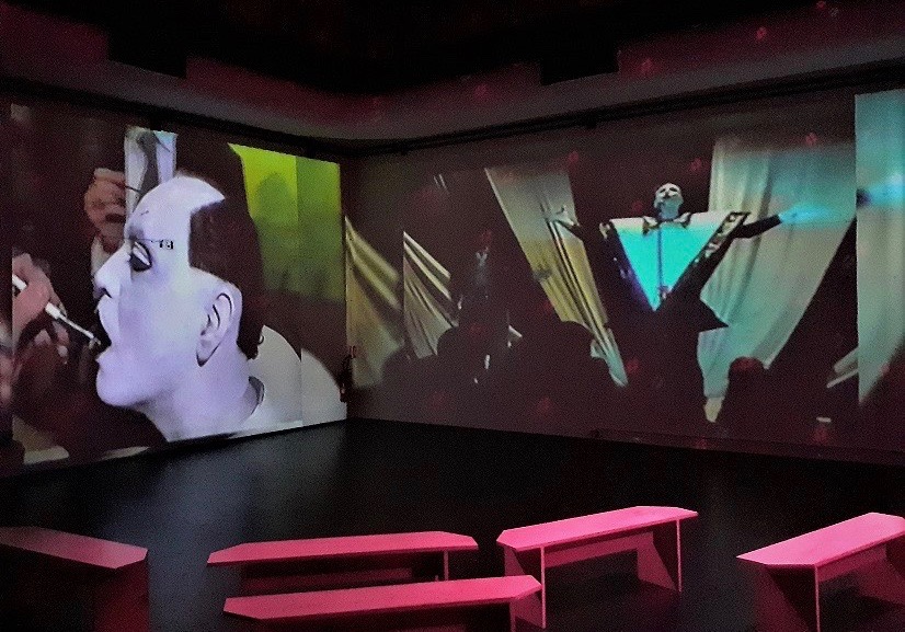 Au Théâtre de la Commune, la scène peut se transformer en club pour le public, une salle accueillant la projection des vidéos tournées au Nueve original (on y voit entre autres Klaus Nomi performer) pendant qu’à d’autres moments, le public s’installe dans la grande salle pour suivre les saynètes inspirées des créations de la Kitsch Company, fondée à l’époque par Donnadieu.