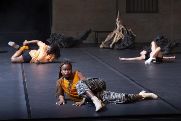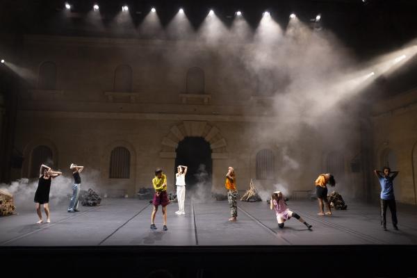 Les souches encore fumantes de troncs d’oliviers calcinés disent beaucoup de cette violence subie, dévastatrice. Marchant, courant, invectivant leurs agresseurs dans toutes les langues, ces femmes d’âges et d’origines différentes inventent une pièce choc, incontournable, avec huit danseuses et comédiennes absolument superbes (sabel Abreu, Aïda Ben Hassine, Kaïsha Essiane, Lucia García Pulles, Mai-Jùli Machado Nhapulo, Carolina Passos Sousa, Jone San Martin Astigarraga, Ophélie Ségala), nous donnant du courage à revendre dans cet outre noir (presque) lumineux, comme le visage de ces résistantes ! Car de ce paysage sombre et désolé, peut surgir une lumière, noir certes, mais appelée à briller comme un phare.