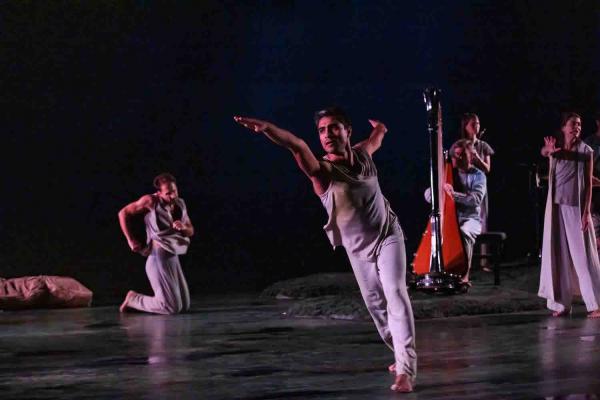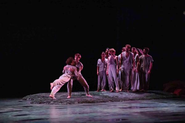 Christophe Garcia a le goût des projets hors normes : on se souvient de cet établissement hôtelier en activité devenu lieu de spectacle (Niebo Hôtel, 2020)… Cette fois pour être moins spectaculaires, les difficultés n'étaient pas moindres. Initialement, il y avait une proposition pour six danseurs qui avait été donnée dans la nef de Collégiale Saint-Martin d'Angers en 2021. Or, le chorégraphe avait alors annoncé une nouvelle version avec réduction de la partition et augmentation de l'effectif par adjonction de celui de l'Opéra d'Avignon. Pour être juste, la présente réalisation en rabat sur l'ambition initiale : aux six danseurs de la compagnie La Parenthèse devait s'adjoindre autant d'interprètes du Ballet de l'Opéra d'Avignon, or ils ne sont que sept… Mais cette restriction dans l'ambition témoigne plutôt de l'intérêt du projet ! Ici, conseiller la lecture des toutes petites lignes du programme, celles que le spectateur ne lit jamais : la liste des co-producteurs permet de mesurer l'enjeu. Qu'une compagnie indépendante puisse rassembler Opéra de rennes, CCN de Nantes, CCN Malandain Ballet Biarritz, CCN Ballet de l’Opéra national du Rhin, KLAP Maison pour la danse et Théâtres Municipaux d’Angers relève de l'exploit. Les uns (Avignon) proposant les costumes, les autres (Rennes) le décor, etc… Et jour de la première où – catastrophe – deux danseurs de la compagnie sont blessés, cette collaboration a permis qu'ils soient remplacés par deux confrères (le mot est dès lors précieux) du ballet avignonnais… Pour les musiciens, il a fallu faire appel à des intermittents, mais quand même. Cette collaboration pour produire un « grand » projet est exemplaire.