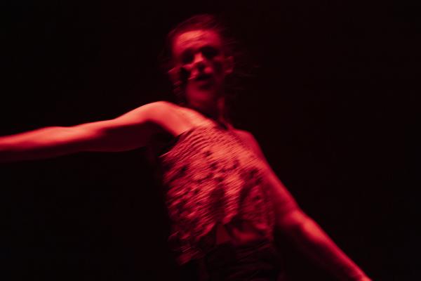 Par moment, sa gestuelle, heurtée, voire agressive et provocatrice rappelle un peu celle de Kurt Joos dans La Table Verte (1932), ce qui n’augure rien de bon pour notre avenir. Postures et gestes de la danseuse, inspirés par ces gestes de résistance, mais détachés de leur contexte, et son souffle amplifié, traduisent un sentiment d’urgence absolue, une effervescence corporelle qui annonce un futur combat. Le passage en lumière rouge avec un haut en dentelle traditionnelle, suffisent à dire la fragilité de la vie, comme les villages potentiellement rasés.