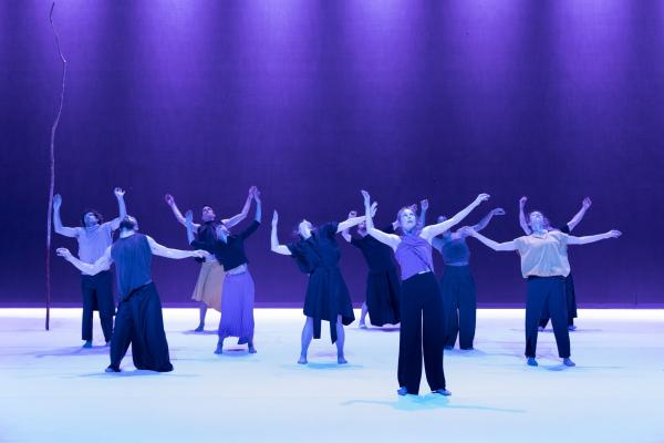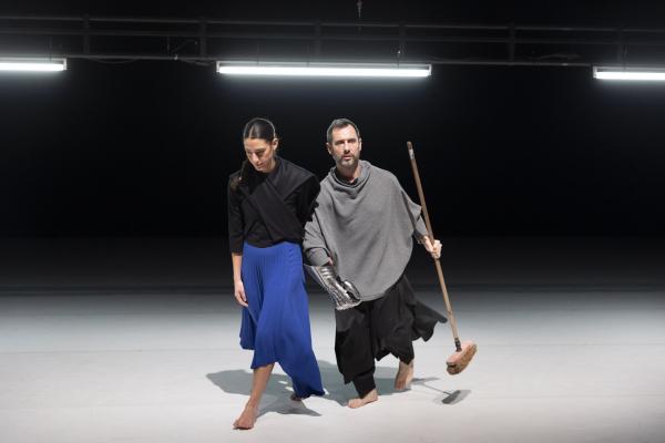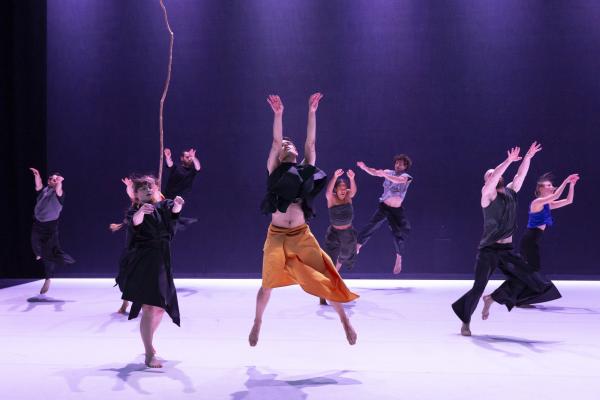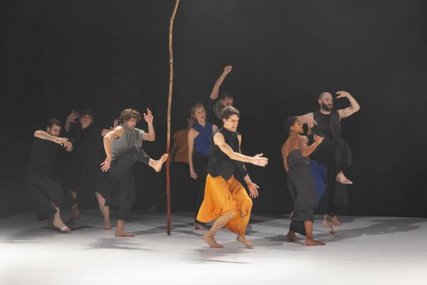 Après un prologue assez amusant, où un homme ganté d’une main de fer tient ferme son balai tout en ayant l’air surpris d’être là (une métaphore, peut-être, du corps de ballet ?), se lève un magnifique chant gaëlique (?) tandis que sont alignés les dix danseurs et danseuses en fond de scène. Alors s’élancent les individualités dans une gestuelle souple, s’enroulant et se déroulant dans des tours et des circonvolutions, s’éparpillant dans de fausses désorganisations des corps, et des instants suspendus. Les costumes signés Mossi Traoré tout comme la gestuelle qui fait voler les jupes dans des rondes à la Bruehgel, ou en chaînes d’inspiration folklorique, ont quelque chose de médiéval, qui nous plonge dans un sentiment du collectif ancré dans la vie même.