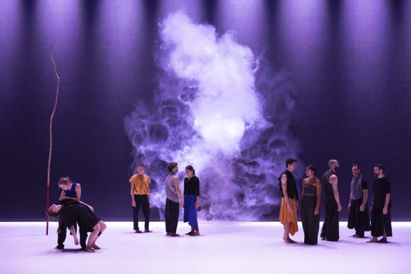 Soudain, un nuage de fumée explose au centre du plateau dans un effet très réussi. Quand il se dissipe peu à peu, naît un nouveau langage, grotesque, burlesque et extravagant, rappelant le Combat de Carnaval et Carême, jouant d’oppositions gestuelles, voire de contradictions radicales qui demandent aux danseuses et danseurs une virtuosité sans faille tandis que leurs cris et leur folie laissent croire à l’abandon le plus total.