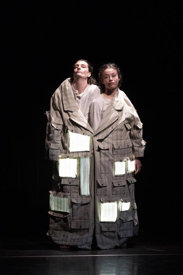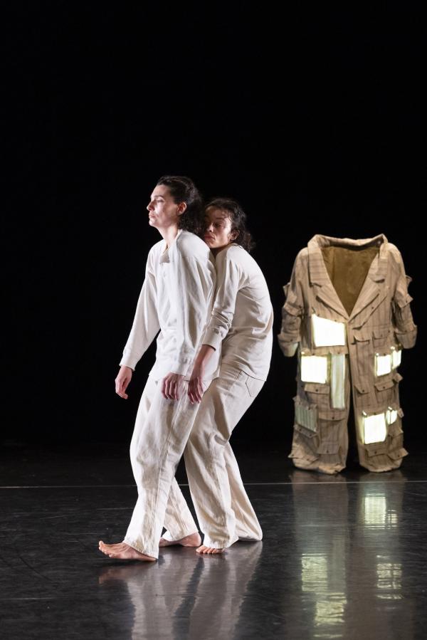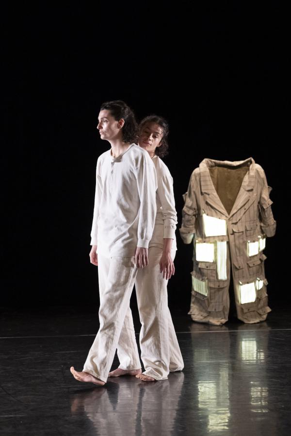 Le premier, intitulé Bernard, faisait référence au mollusque sans coquille qui se cherche toujours un habitat convenable, le bernard-l’hermite. De façon amusante, Allison Faye (la chorégraphe) et Juliette Bolzer, explorent, à l’aide d’un manteau carapace bien trouvé, avec ses nombreuses poches, tout ce que ce petit animal suppose : la vulnérabilité, le fait de ses glisser « dans la peau d’un autre » ou le fait « d’être (aussi !) un autre ».