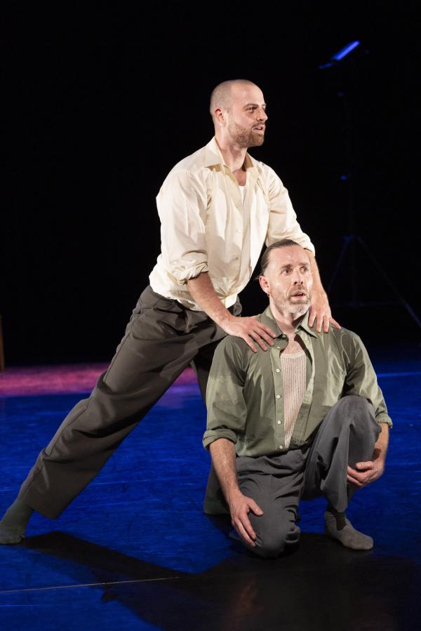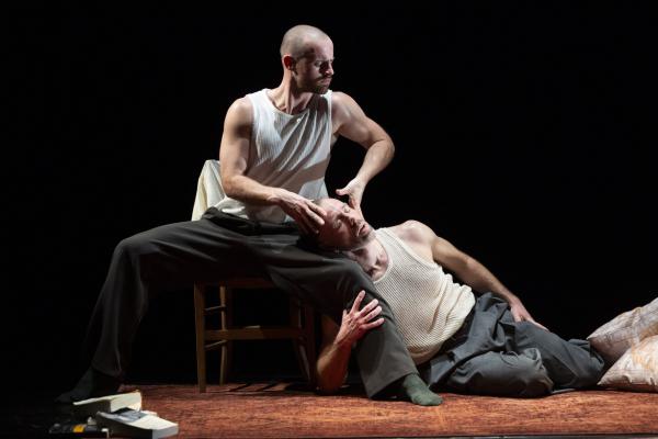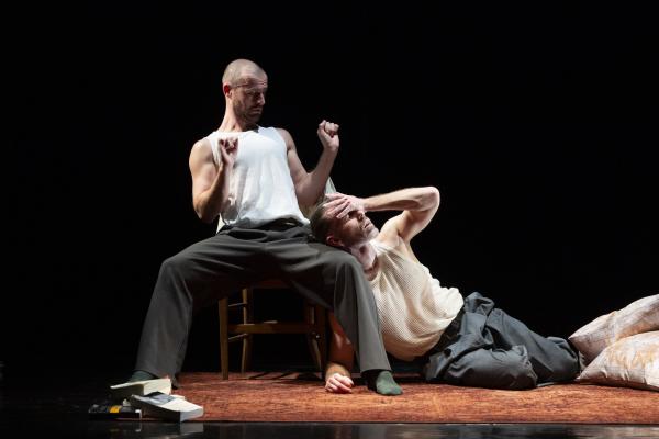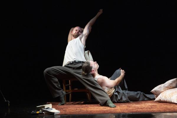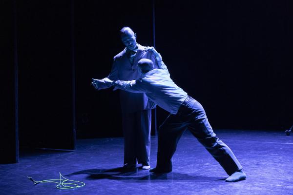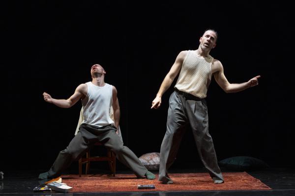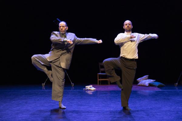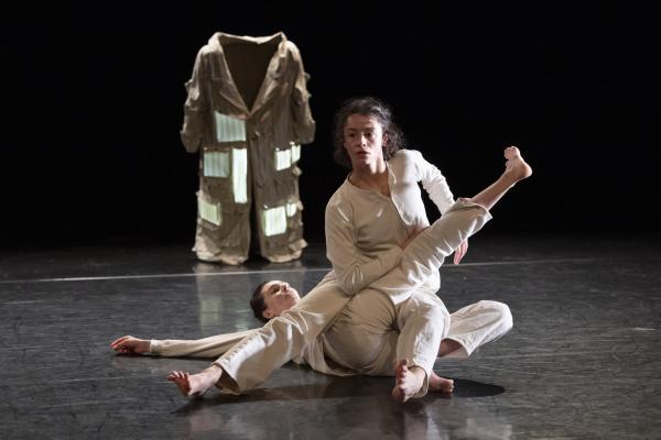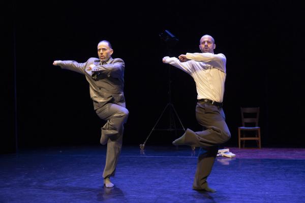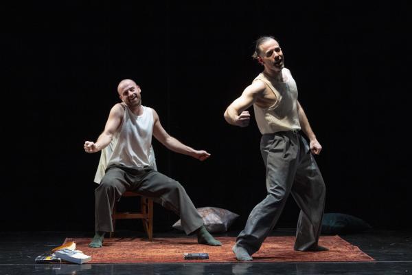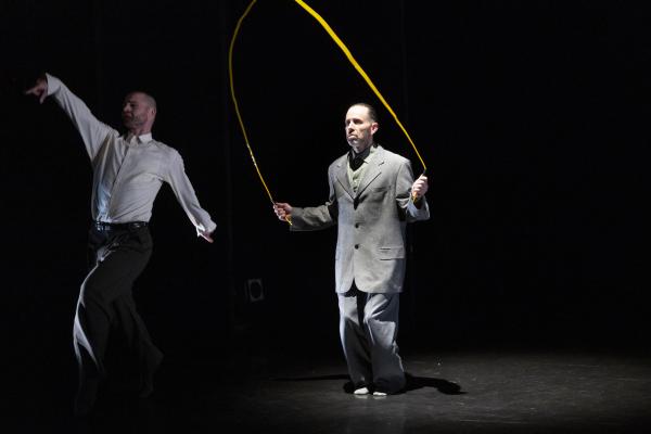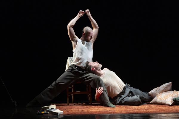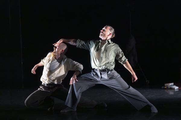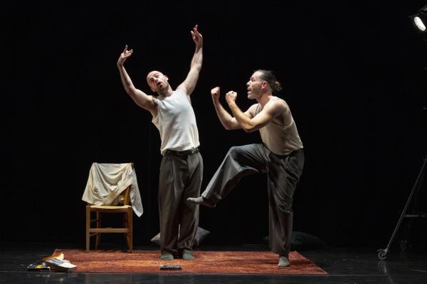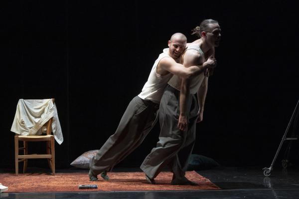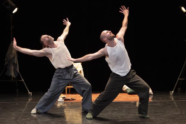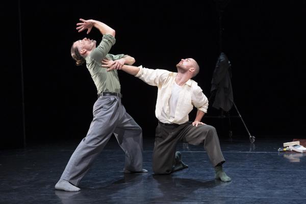 Très expressif, pour ne pas dire théâtral, car c’est un duo très dansé, la pièce raconte une rencontre entre deux hommes dont nous ignorons les tenants et les aboutissants. Ce sont de brefs instants capturés en plein vol, pleins d’humour et d’esprit, d’une virtuosité impressionnante. Leur récit oscille entre sensations intérieures et représentation extérieure, avançant presque toujours en parallèle sur ce double plan, ce qui indéniablement, est une force spécifique à la danse de pouvoir signifier simultanément des affects contradictoires – ne serait-ce qu’en dissociant les parties du corps, ou les mimiques du visage du mouvement lui-même.