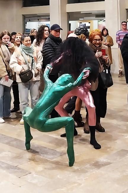 Quand l'art et l'histoire se rencontrent sans crier gare, l’entrechoc peut être retentissant. Le 20 janvier à Washington, un Donald Trump exalté par son investiture revancharde signe un décret stipulant qu'il n'existe que deux genres réels, l'homme et la femme. Et il est clair qu'il ne les voit pas dotés des mêmes droits. A ce moment précis, de l'autre côté de l’Atlantique, Sine Qua Non Art envahissent le hall et le plateau de La Coursive, à La Rochelle, et prouvent qu'il n’existe en réalité pas deux sexes identifiables, mais précisément : Aucun! Aussi la liberté vestimentaire et gestuelle de leurs interventions commando dans le hall de La Coursive fit comprendre que cette réalité-là est plus généreuse en matière de surprises et de possibles - et donc plus joyeuse - que la vision binaire de la cathosphère trumpiste.