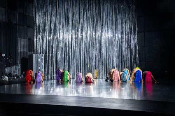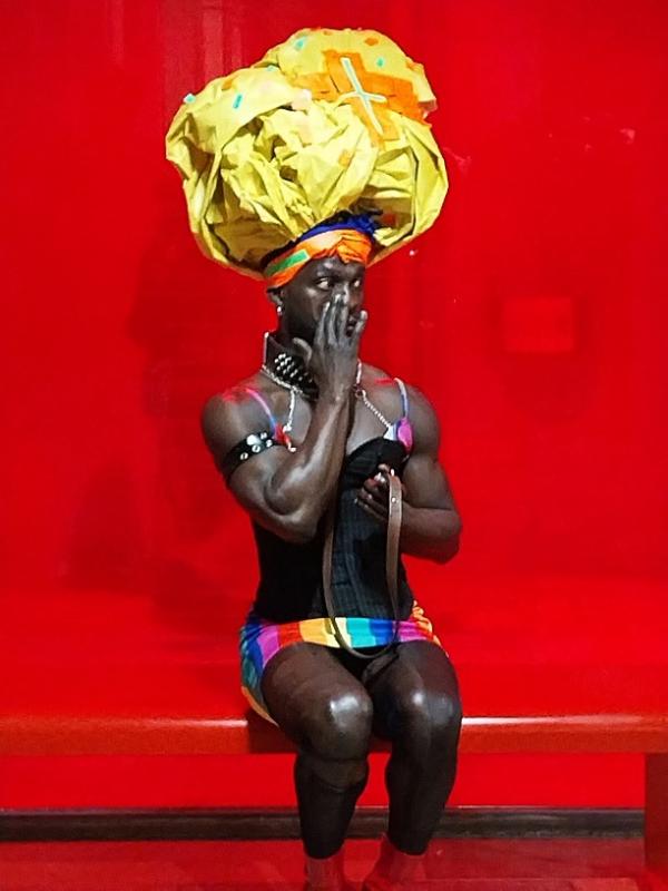 Mais il y a tant de moments de gaité, entre humour et délectation. Une pluie de concombres fraîchement rappées s’abat sur des corps languissants, un homme s’envole en étant suspendu par ses cheveux, les fantômes affublés de perruques éclatantes se mettent à quatre pattes et vont bientôt se trans(!)former en fashion show et voguing. Une intrigante reine africaine (Florence Gengoul) balade sa trainée de couvertures de survie et donne en même temps la technicienne de surface, non sans accueillir une sublime chanteuse-danseuse (Lucille Mansas) qui prône la liberté sexuelle à travers Les Nuits d’une demoiselle de Colette Renard. On est au cabaret, après tout…