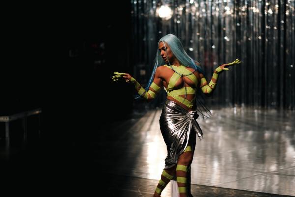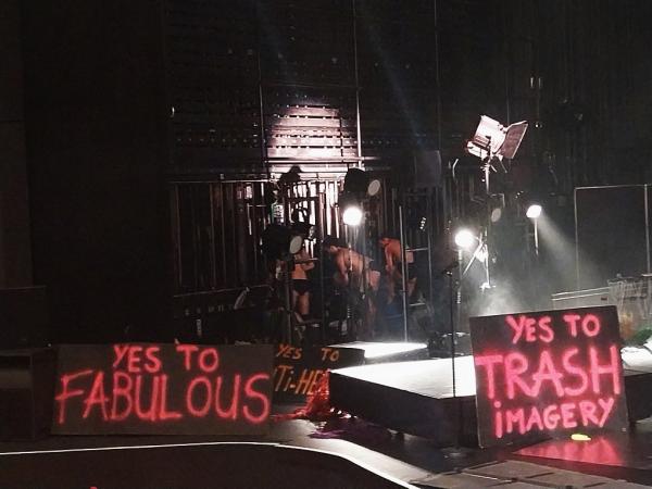 Aussi Catching lion… en finit avec les prophètes mais remue la mémoire. Le Cabaret Voltaire est ici vu comme le Big Bang de l’effervescence artistique et sociétale d’un occident qui s’est offert un siècle de libertés et d’horreurs, de vertiges et d’accélération permanente, de paupérisme et d’enrichissement se succédant à une vitesse jusque-là inconnue. Et dans le rétroviseur, vu depuis le siècle suivant, tous les phénomènes et évènements du XXe se superposent. Sur scène, tout a droit à son contraire. L’ordre appelle le désordre et le masculin transcende le féminin jusqu’à ce que vulnérabilité et puissance ne fassent qu’un. La techno se mêle du baroque et le disco du Lac des Cygnes, le bien-être se joue de la terreur et au salon de beauté on massacre les légumes pour se préparer à la séance fashion show et voguing.