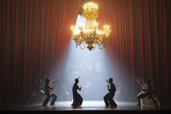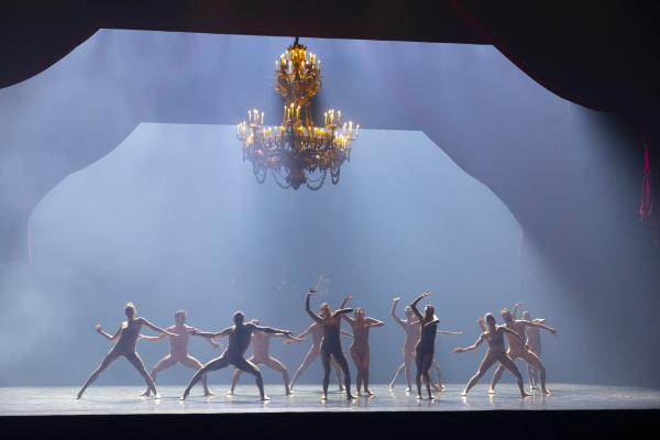 Ce ballet est une déclaration d’amour au lieu même qui l’abrite. Les rideaux de velours, éléments scénographiques centraux, convoquent le passé prestigieux de Garnier, tout en le subvertissant avec ironie. Ils encadrent, dévoilent, étouffent ou magnifient les corps. Le gigantesque lustre qui descend lentement du plafond évoque davantage une cathédrale qu’un bal mondain.