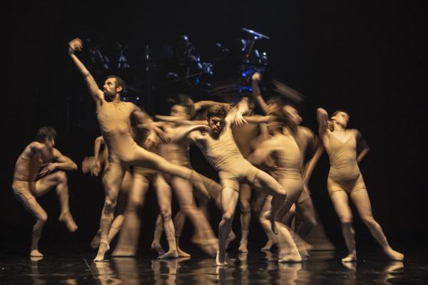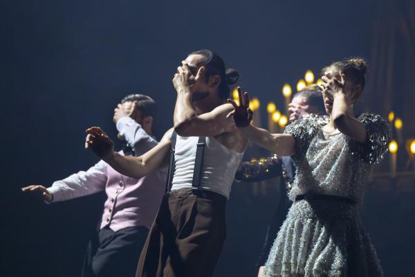Dès les premiers instants, une atmosphère étrange s’installe. Les danseurs, tout droit sortis d’une fête décadente, se meuvent dans un clair-obscur orchestré par le designer lumière Tom Visser. Costumes de soirée dépareillés – mais signés Chanel – mouvements syncopés, regards perdus : la fête dégénère doucement en transe. La bande-son, composée par Shechter lui-même, oscille entre jazz abrasif, rythmes orientaux et riffs électro, jouée en direct par un quatuor perché en fond de scène, un peu comme dans l’excellent Grand Final. Une musique-matière, parfois déstabilisante, mais toujours charnelle.