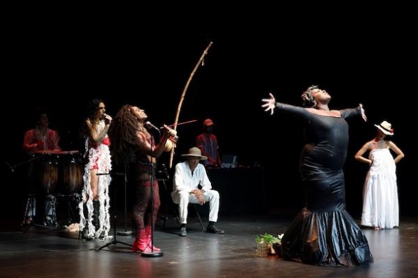 Mandinga do futuro, en rythme de résistance. Si tel est le titre du spectacle de Puma Camillê, c'est aussi une manière de se présenter. Et elle prononce « mandjinga ». Invite le public à « faire partie » de la cérémonie qu'elle orchestre autour d'un bol dans lequel elle verse poudres, plantes et fruits, des feuilles et une sucette. C'est selon le même principe qu'elle compose sa session scénique où les ingrédients sont humains et artistiques : le chant, le berimbau, les percussions, les platines, des costumes qui peuvent renvoyer aux Orixás et autres divinités du Candomblé. Et bien sûr, la danse. Sans oublier l'incroyable crinière de cette lionne des ballrooms.