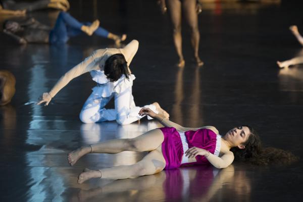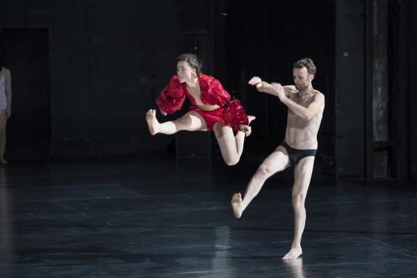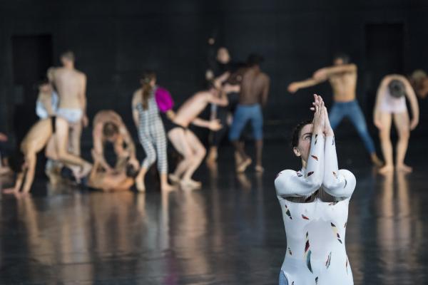 Est-on suspendu, en haleine, au long solo introductif d'une danseuse presque démantibulée, que s'abat soudain le précipité en nuée, de la totalité de l'effectif restant. Soit une figure très consommée dans la période, déclinée dans toute une belle palette de variations, aussi bien par l'Ouramdane de Tenir le temps que l'Olivier Dubois d'Auguri, voire l'Emanuel Gat de Sunny. Et tout au long de la pièce, on lira les effets de maîtrise de séquençages rythmiques ici, coagulations de groupes là, magnifiques taversées tourbillonnantes ailleurs, et discrets surgissements d'icônes polarisant l'attention, et patientes contaminations chorales.