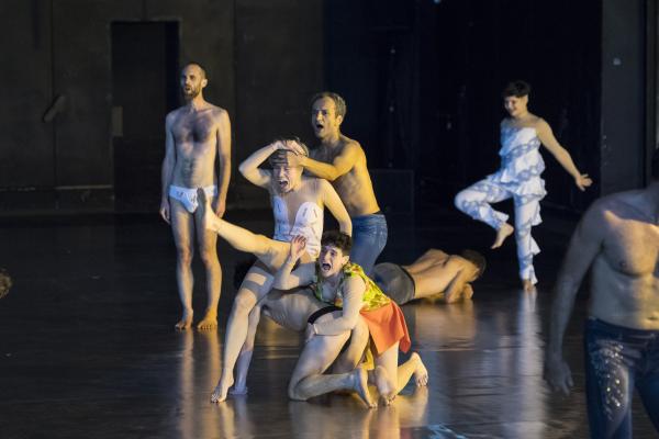 Qu'est-ce qu'un geste ? Il y en a dix mille dans la pièce, dont le principe est que jamais un.e danseur.e ne répètera celui qu'il vient d'effectuer. Il en découle une tonalité dominante d'étourdissement frénétique, de séquençage endiablé, d'impulses saccadés, phrases brèves, et dépense essorée. Ce serait comme un rizhome saturé de cocaïne. Une sensation de flux, de branchements, d'agencement par plans de consistance, mais surtout d'immanence, et dégagements fulgurants de lignes de fuite.