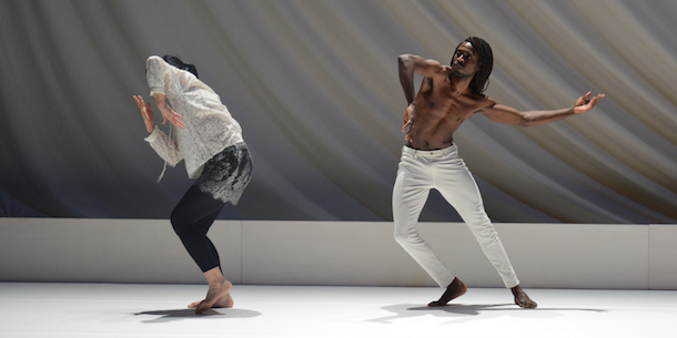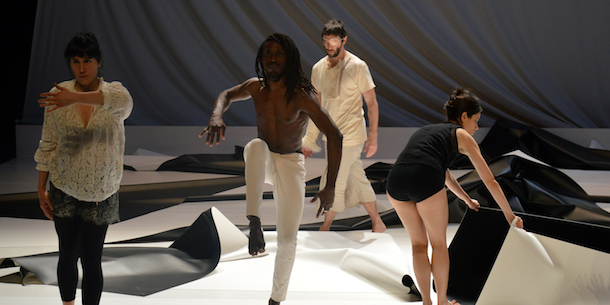 Cela se manifeste, à un tournant de la pièce, par l'effondrement partiel d'un lourd rideau de fond de scène. Egalement par une longue entreprise collective de déconstruction de l'intégralité du tapis de sol, et son retournement sens dessus dessous. Ce sont d'autres termes du langage scénographique, tandis que la créatrice des lumières, Françoise Michel, s'en tient à de sobres plages de clarté incisive, pleines de vigueur (re)fondatrice. Le plateau sera le lieu d'une puissance déménageante qui émane de Bach, autant qu'elle s'exerce sur lui, assez irrespectueuse, mais touchée par la grâce de l'esprit de fantaisie.