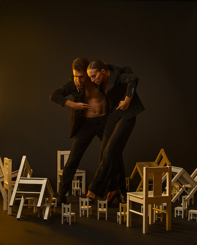Des jeux il y en a aussi sur scène et, plusieurs fois mis à contribution, les enfants exécutent très sérieusement les désirs des interprètes comme entasser de minuscules chaises et les faire s’écrouler comme des dominos. Humour aussi et destruction du 4ème mur lorsque les danseurs, passant d’un pinceau de lumière à l’autre dans une nouvelle danse effrénée, claquent des doigts pour faire éteindre l’illumination.