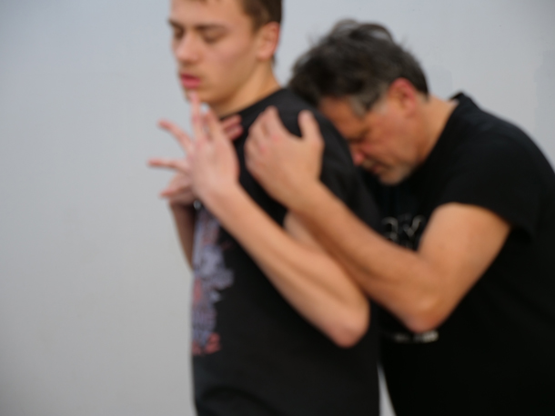 Mais c’est surtout la rencontre entre deux danseurs formidables, Jules Lebel et Stéphane Imbert, le premier étant un tout jeune danseur de 20 ans, à l’IME (Institut Médico Educatif) – APEI[1] des 2 Vallées de Château-Thierry et Stéphane Imbert, artiste chorégraphique depuis 40 ans, qui a travaillé notamment pour Odile Duboc.