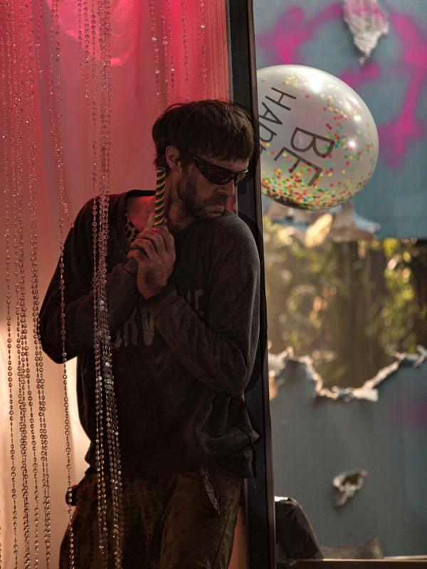 On dirait qu’un tsunami est passé par là. Après une quarantaine de minutes environ, la fête s’éteint brusquement. Le décor a été saccagé en temps réel, sous nos yeux ébahis. Mais il n’y a pas eu de tsunami ni de séisme ou autre catastrophe naturelle. La destruction est l’œuvre exclusive d’une jeunesse égotique et technophile (musicalement parlant) et le vandalisme fut l’acte ultime d’un microcosme hédoniste. En costume de Tarzan, en poule ou en treillis, ils se sont livrés à leurs envies, leurs instincts, aux plaisirs de la musique, du champagne, de la chair. Et au fond du plateau, un vieux poste au petit écran brouillé transmettait les nouvelles de la pollution des océans, d’inondations et de sécheresse.